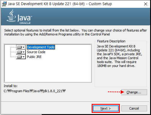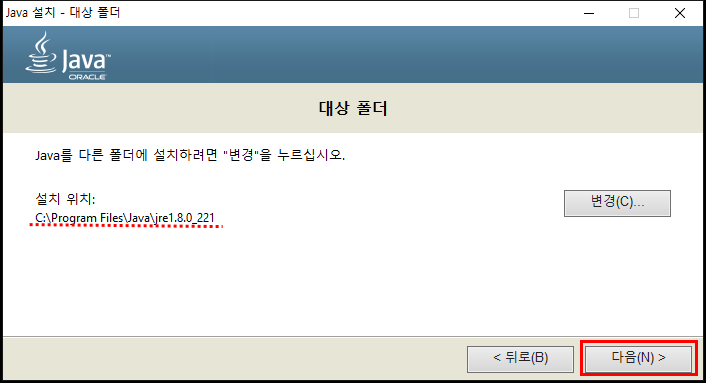 6) jdk가 설치될 경로를 지정해줘야 하는데 기본경로를 쓰셔도 되고